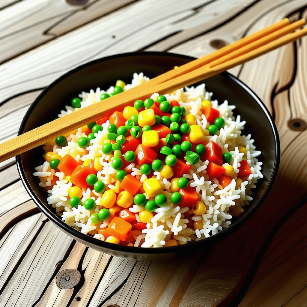 완성된 야채볶음밥은 보기에도 아기자기하고, 맛도 훌륭합니다. 각종 색깔의 야채가 섞여 있어 식탁을 화사하게 만들어줍니다. 볶음밥 위에 반숙 계란을 올리면 더욱 풍성한 맛을 즐길 수 있습니다.